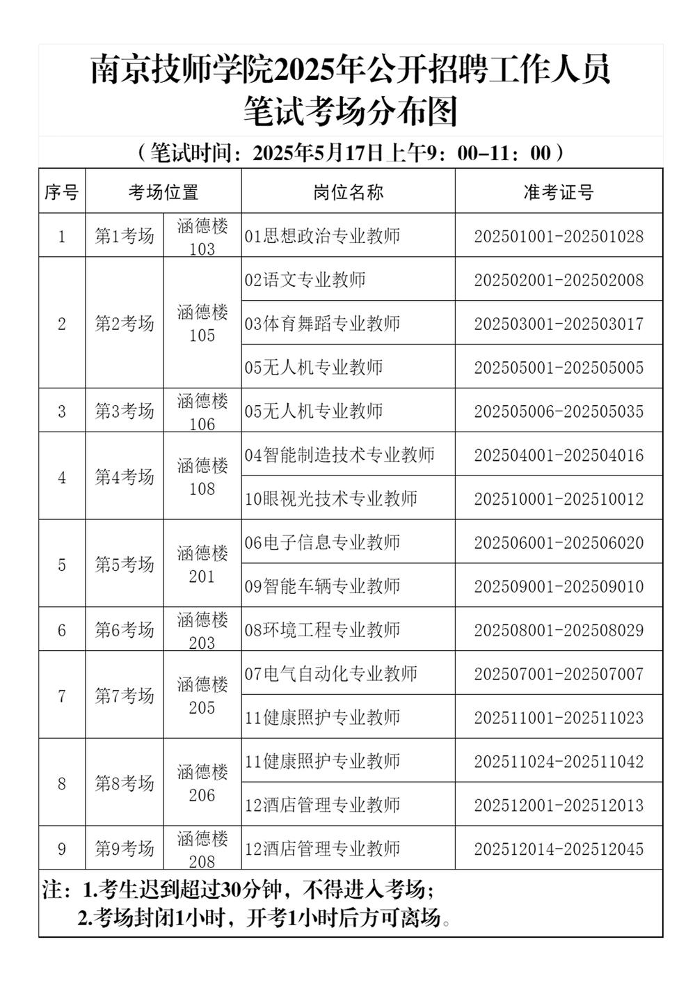 韦德网站2025年公开招聘工作人员笔试考场分布图